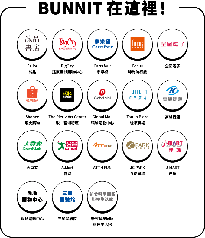 BUNNIT 全部都有,目前已上線至蝦皮店到店,歡迎大家去體驗!
