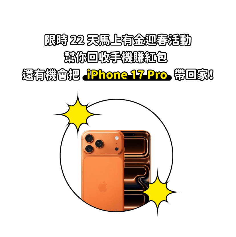 【新春抽抽樂】抽獎資格以活動期間2026/02/07~2026/02/28成立之訂單,且需於2026/3/08 23:59期限內「成功完成請款」。若因回收手機為仿冒機,或未解除 iCloud/Google 鎖定等因素導致回收失敗者,將取消抽獎資格。