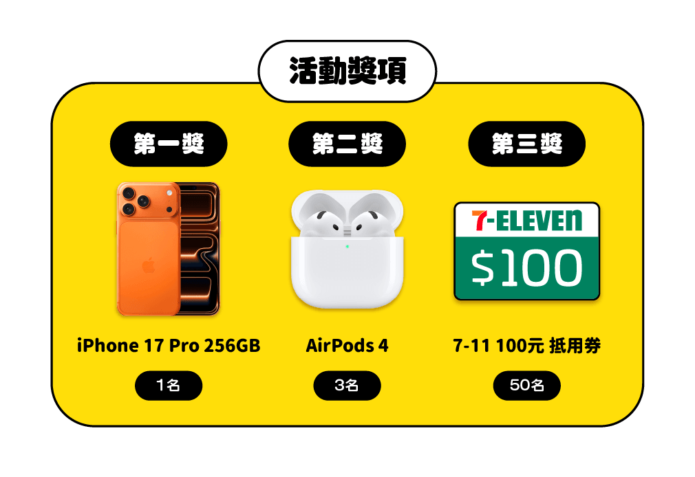 - 第一獎:iPhone 17 pro 256GB(1名)